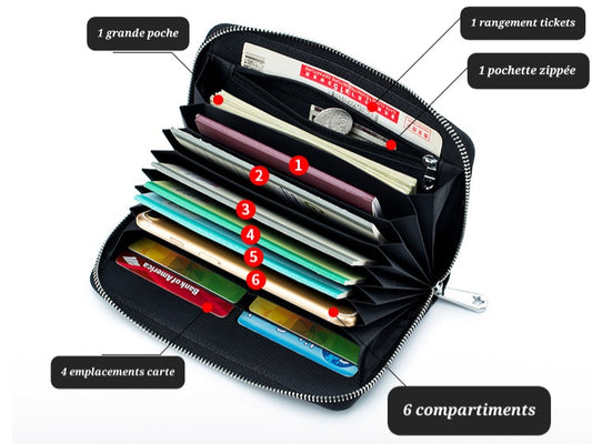 Portefeuille couverture cuir à compartiments