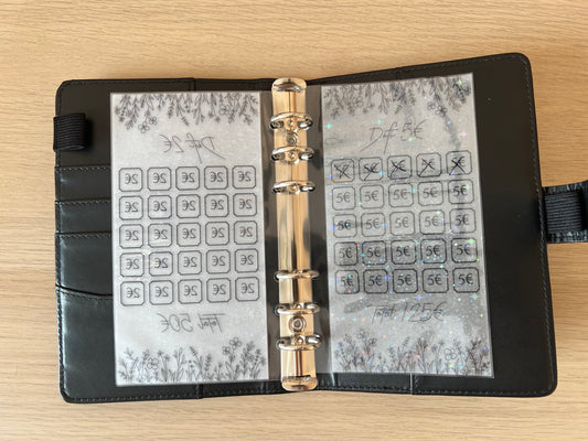 Tracker défi euros plastifié perforé pailleté format A6Prix habituel €2,00 EURPrix habituelPrix unitaire / par-