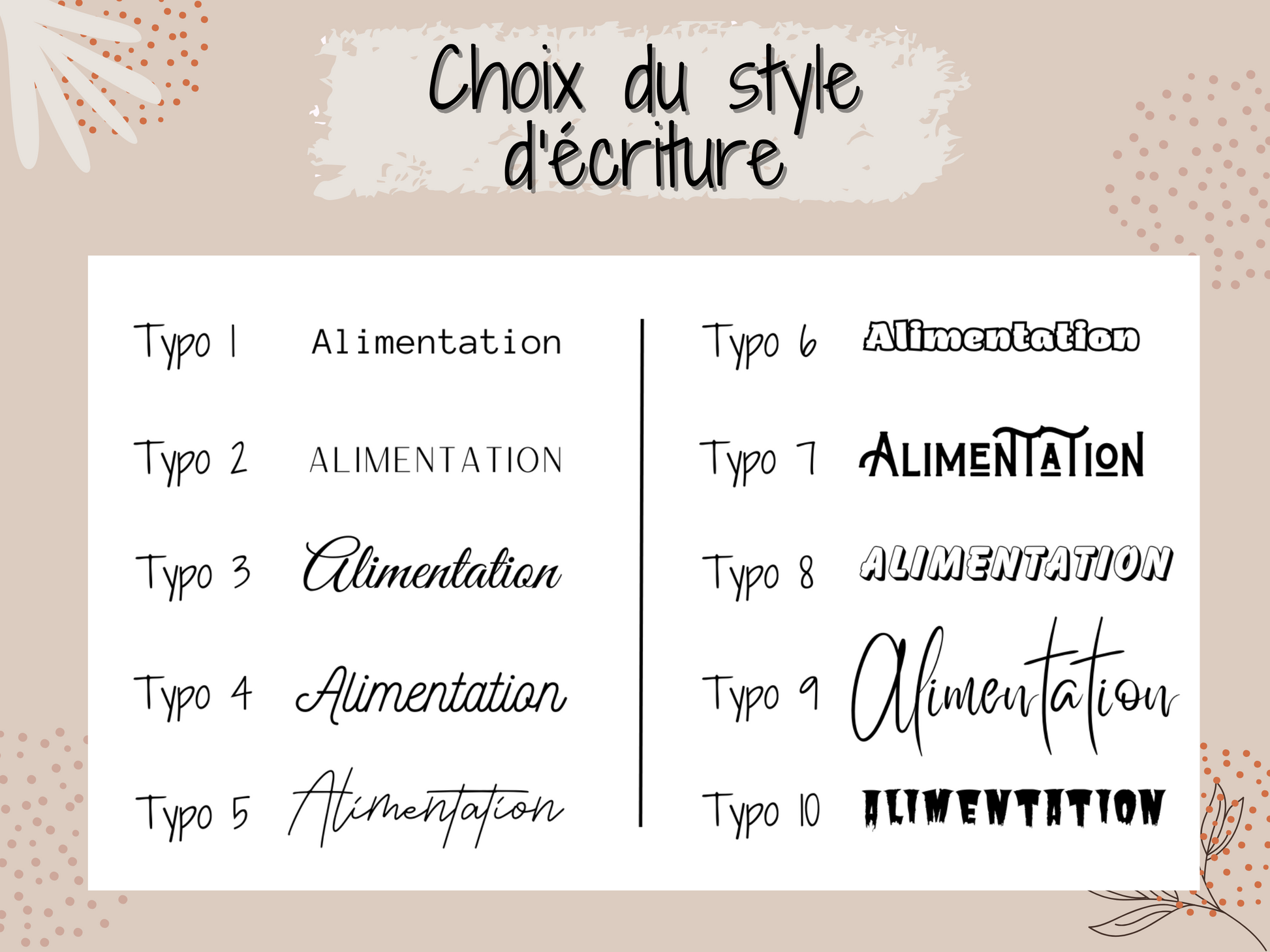 10 styles d'écriture au choix (modèle présenté typo 5 sur les photos)