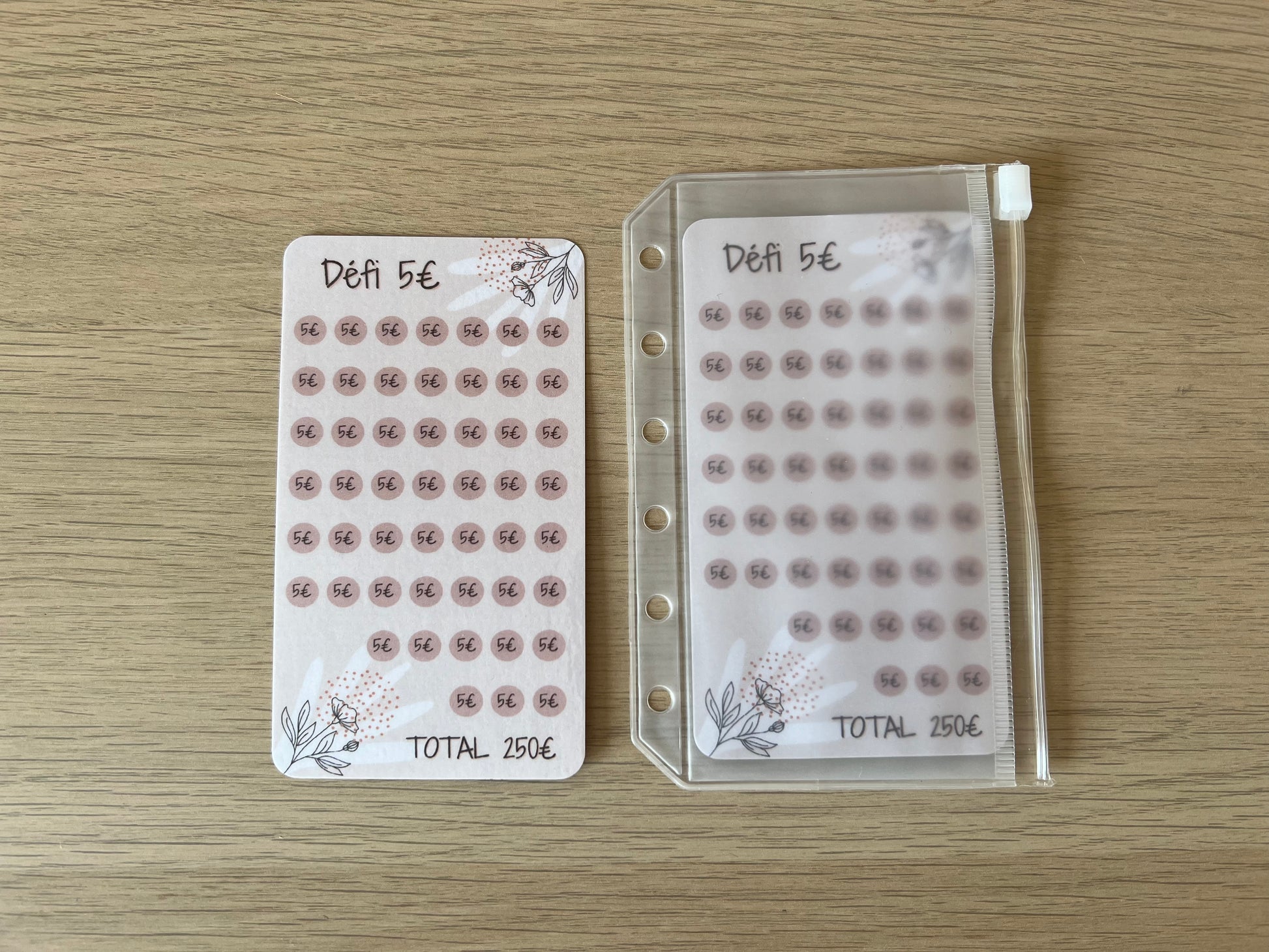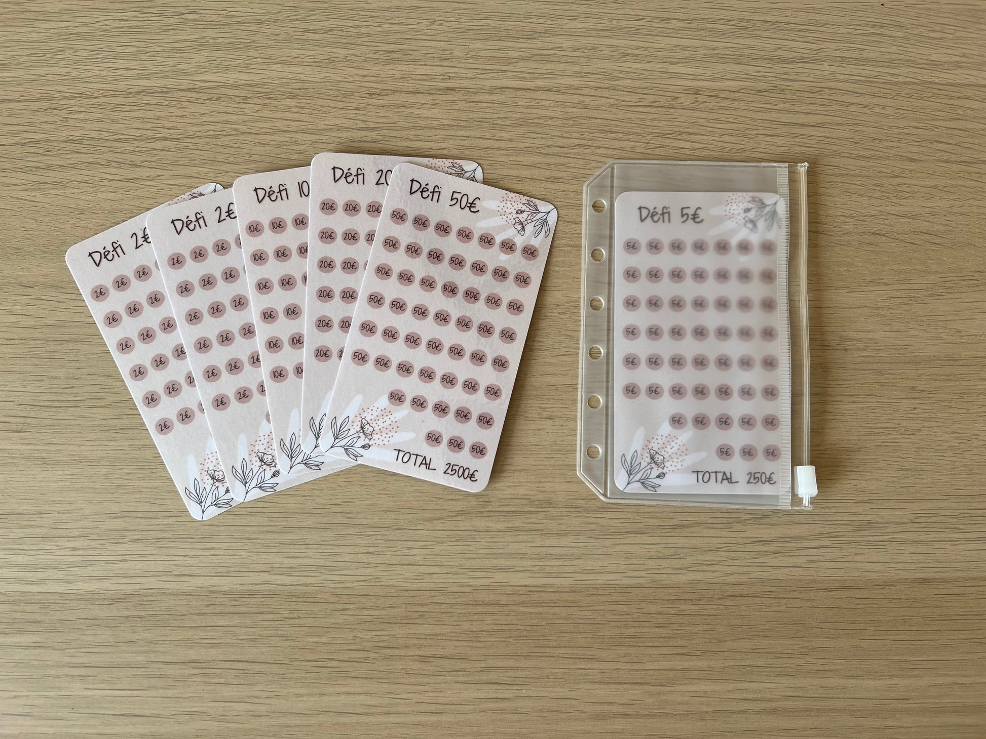 Tracker défi plastifié 1,2,5,10,20 et 50 euros pour enveloppe A7