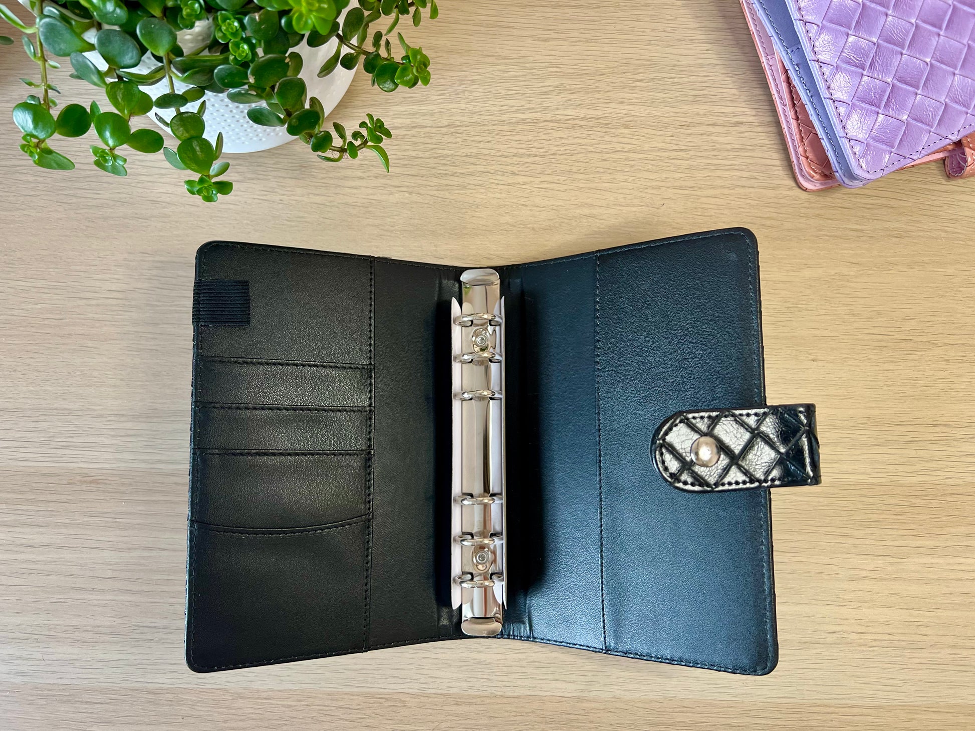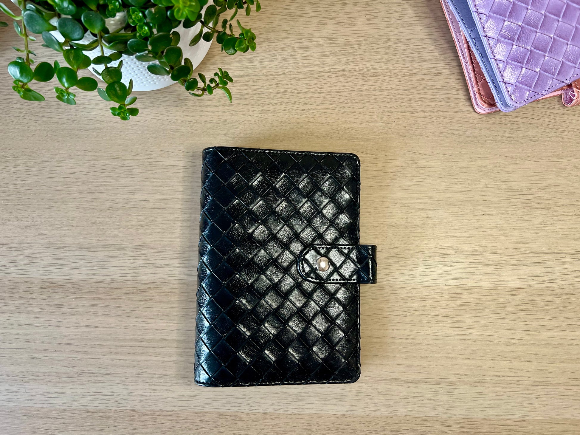 Classeur A6 6 anneaux similicuir tressé