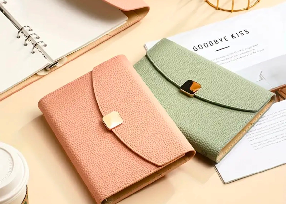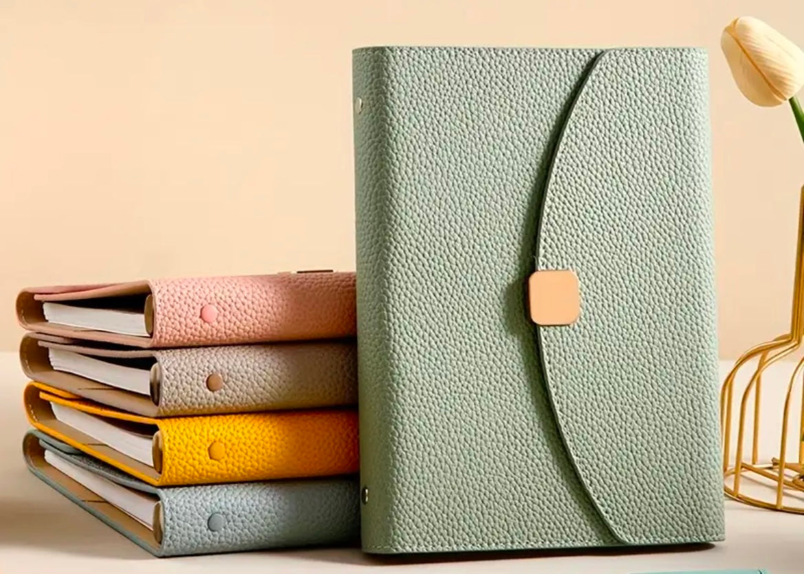 Classeur A6 6 anneaux similicuir effet peau de pêche