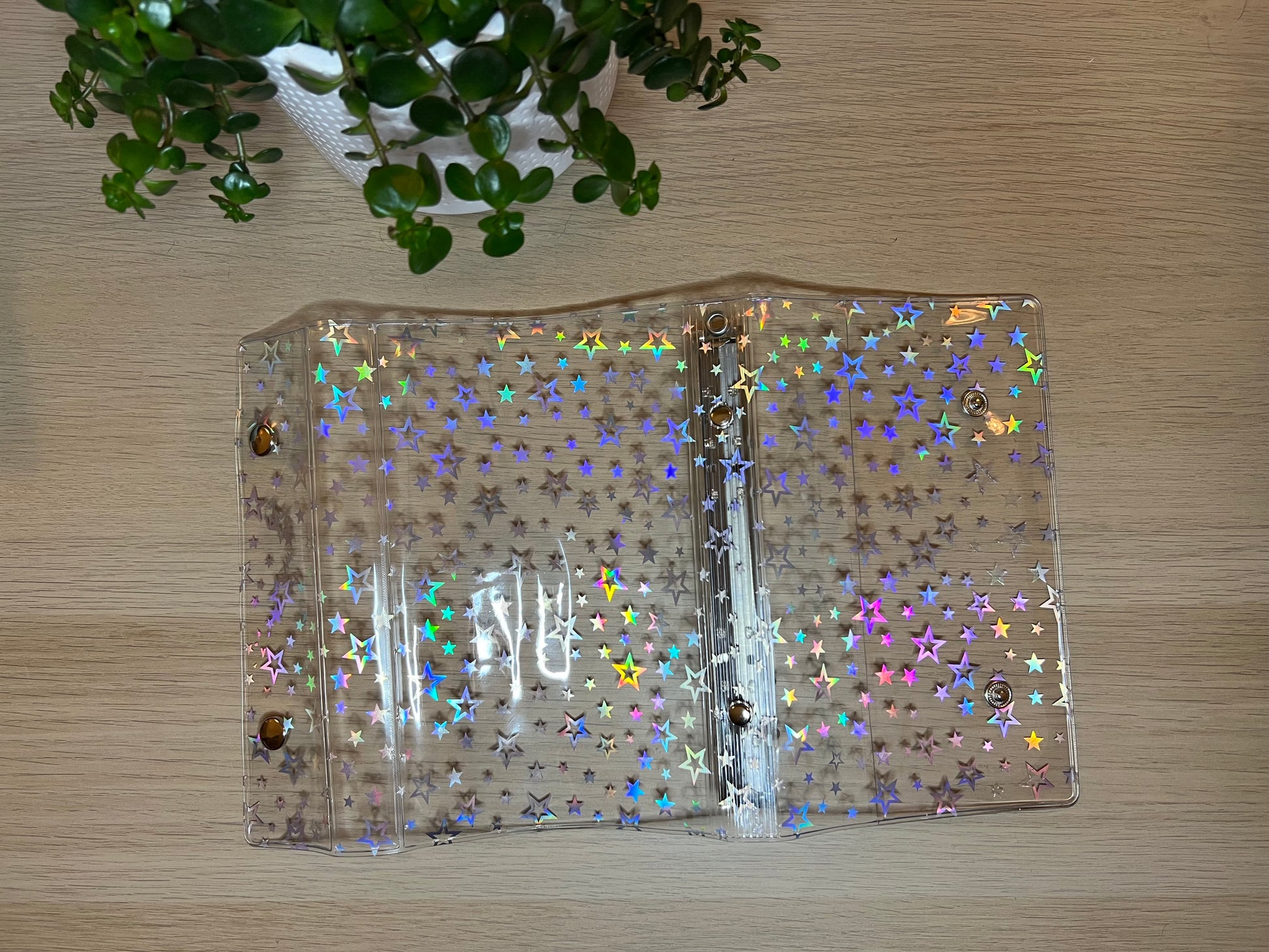 Le classeur fait 19cm x 13cm, il est souple et fabriqué en PVC.