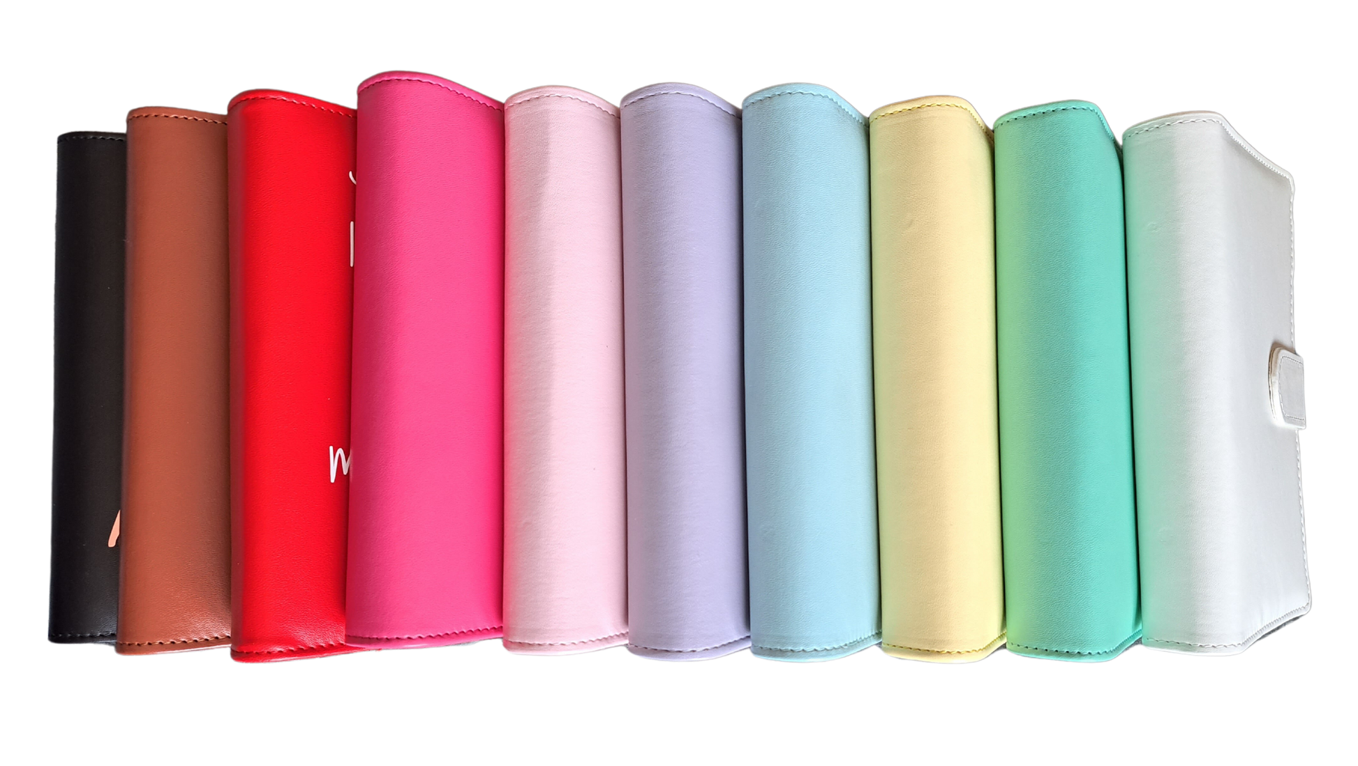 Le classeur fait 19cm x 14cm, il est souple et fabriqué en similicuir
