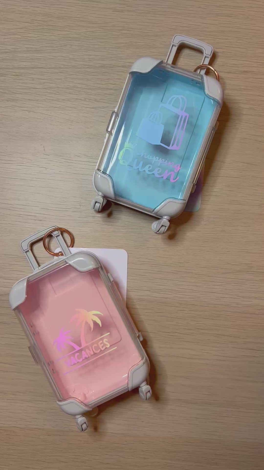 Disponible en bleu, rose clair, rose fuchsia et violet (voir fiche produit valise personnalisée pour voir les 4 coloris)