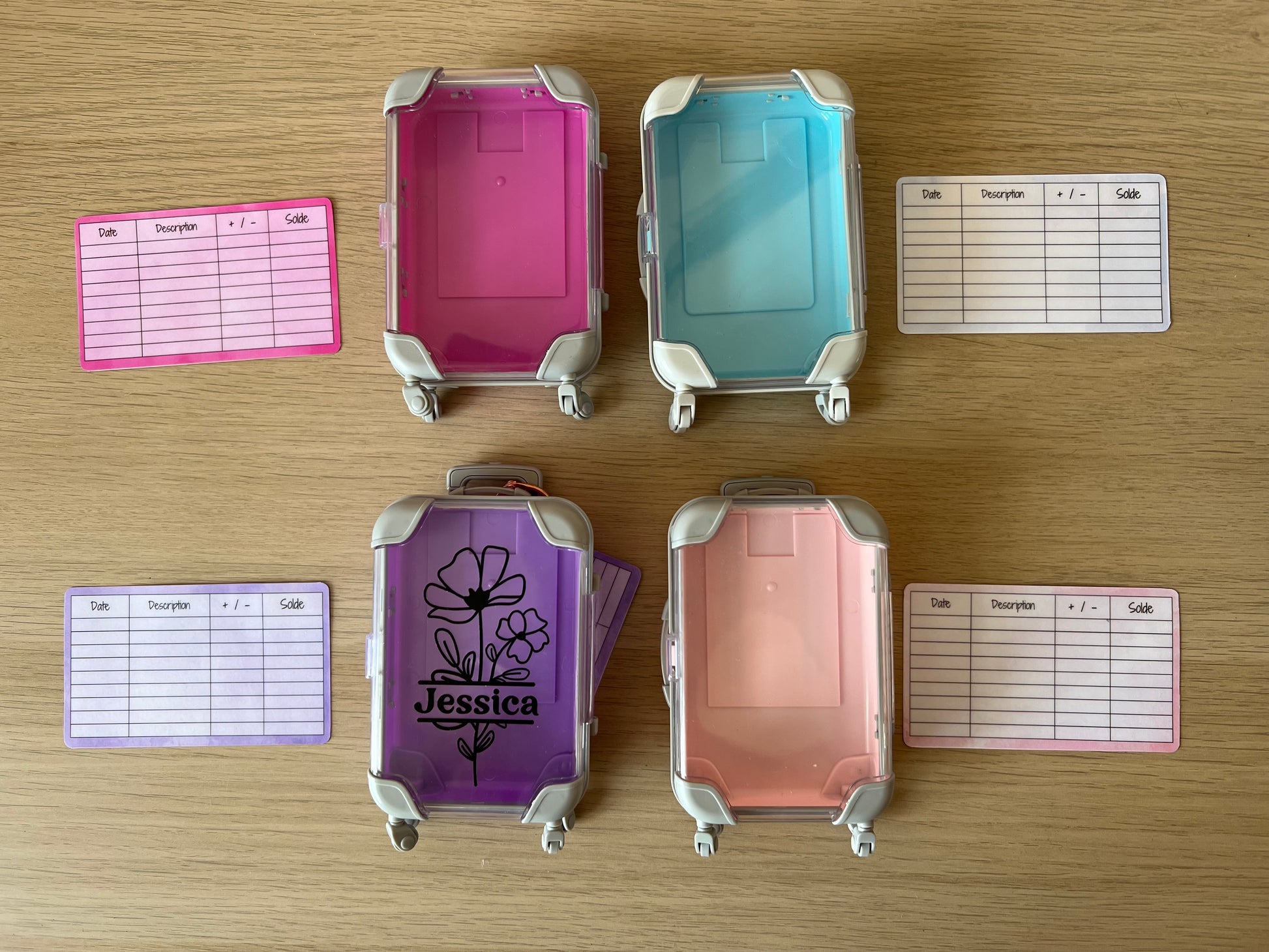 ce tracker recto verso permet de noter le montant total qui est dans la valise et à l'arrière de noter le suivi entrées et sorties d'argent
