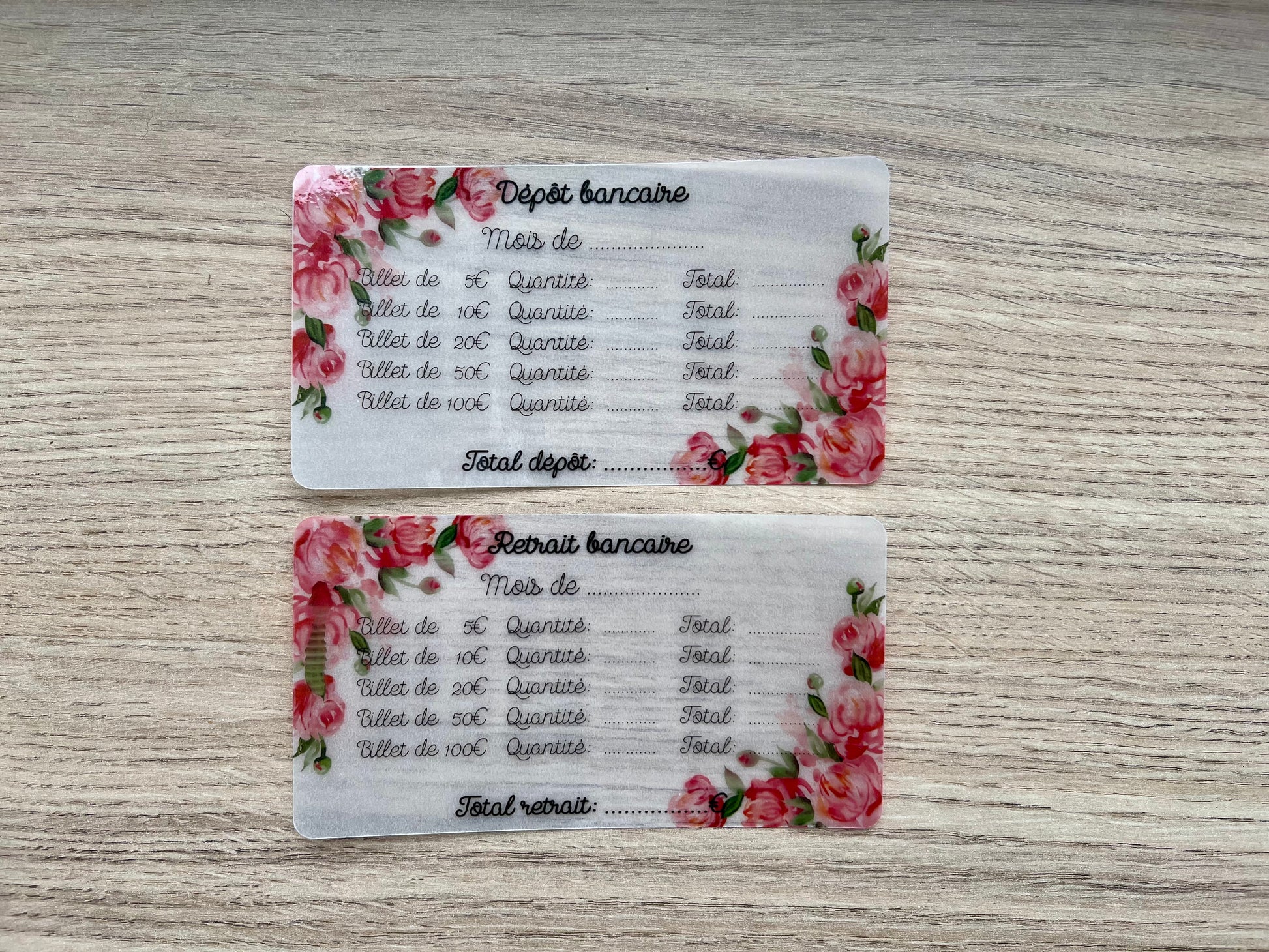 -2 fiches plastifiées retrait et dépôt bancaire (dimensions: 8.2cm x 15cm à + ou - 5mm)