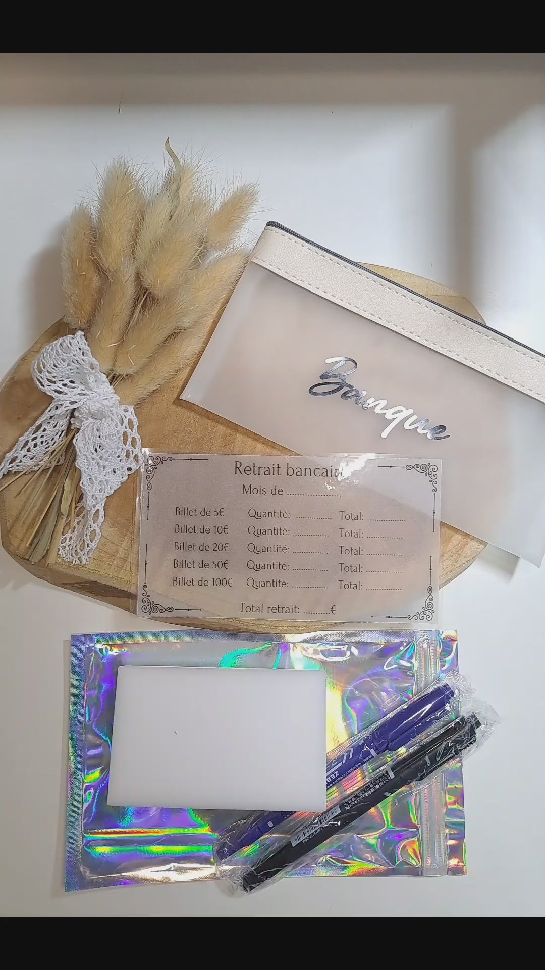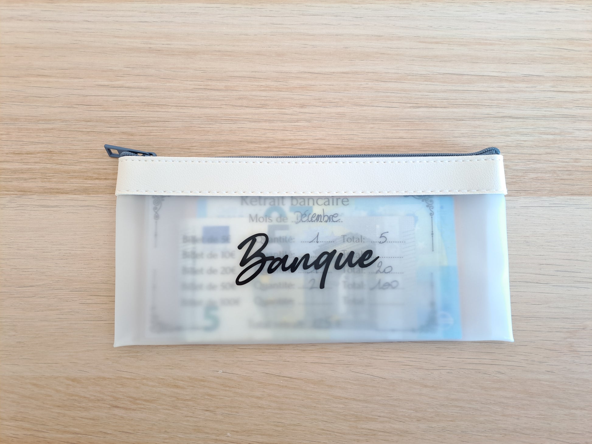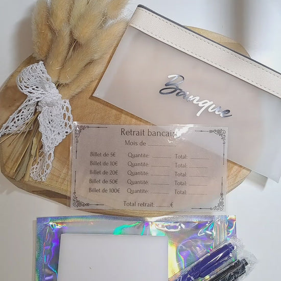 cette pochette de retrait bancaire vous permettra d'anticiper le retrait du mois grâce à sa fiche plastifiée réutilisable, elle vous permettra également de remettre dans l'enveloppe l'argent à remettre en banque le mois suivant