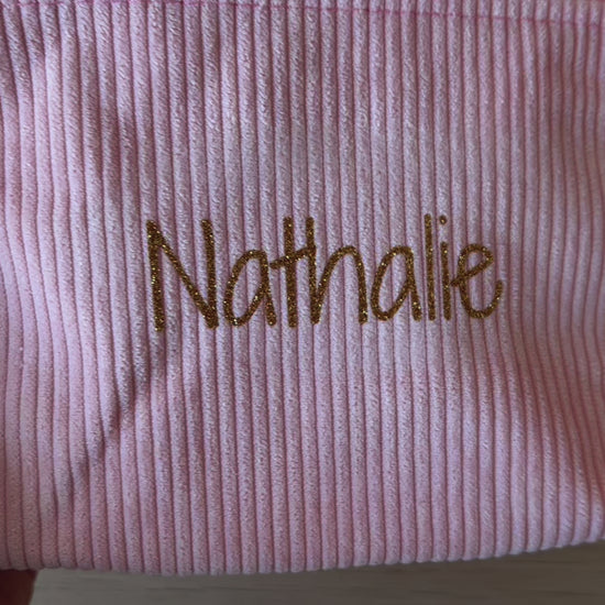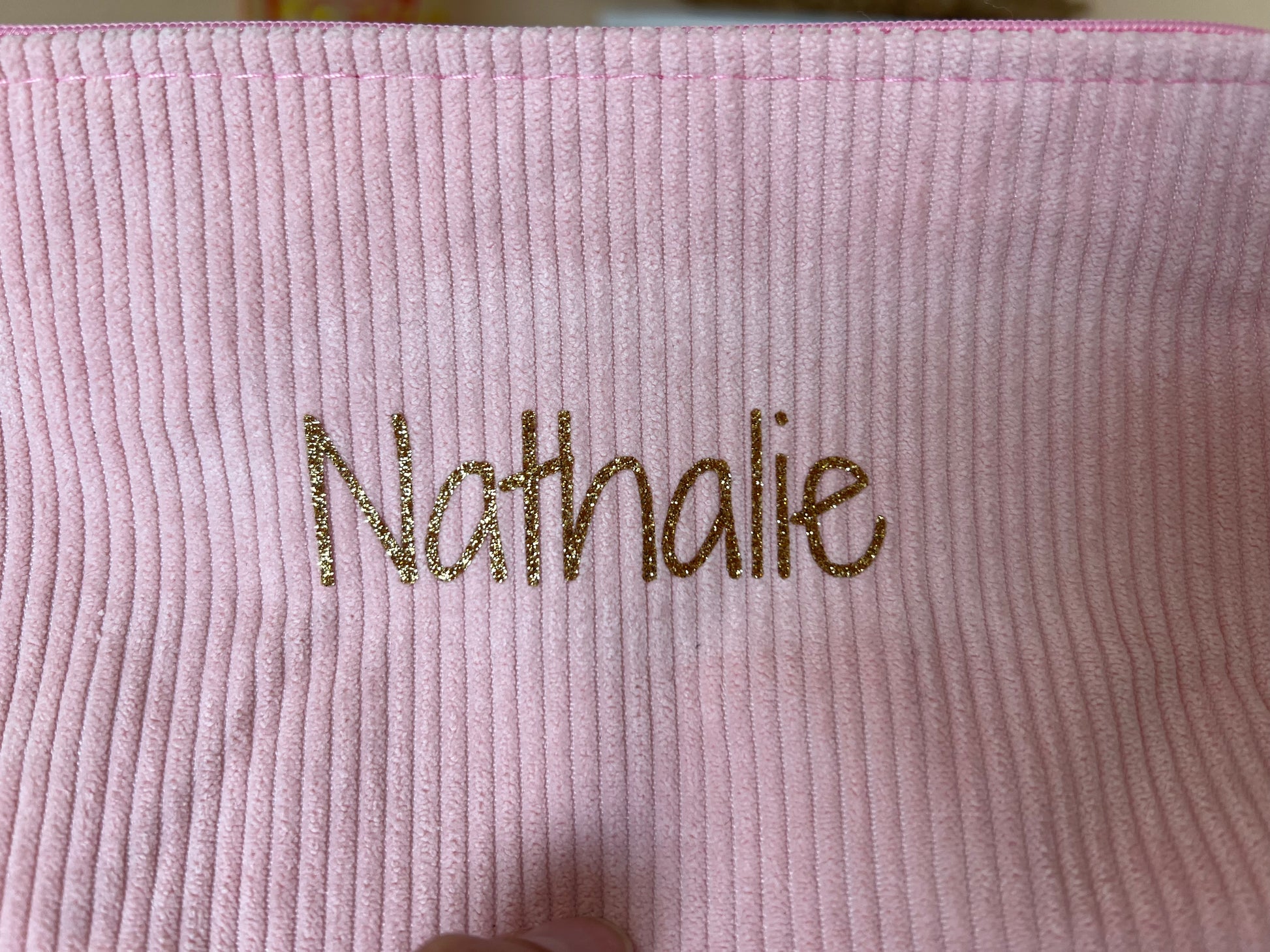 6 couleurs de personnalisation (noir, doré, rose pailleté, rose claire pailleté, doré pailleté et gris pailleté) et 4 styles d'écriture au choix