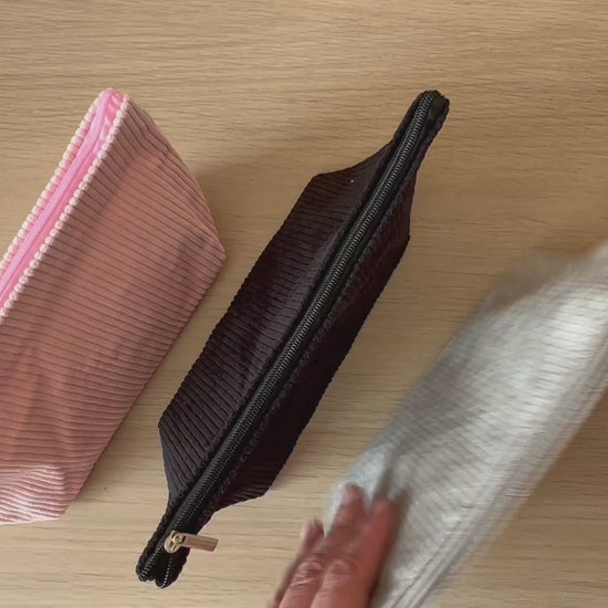 Elle est doublée d'une matière un peu étanche, on peut y mettre des stylos, du maquillage etc